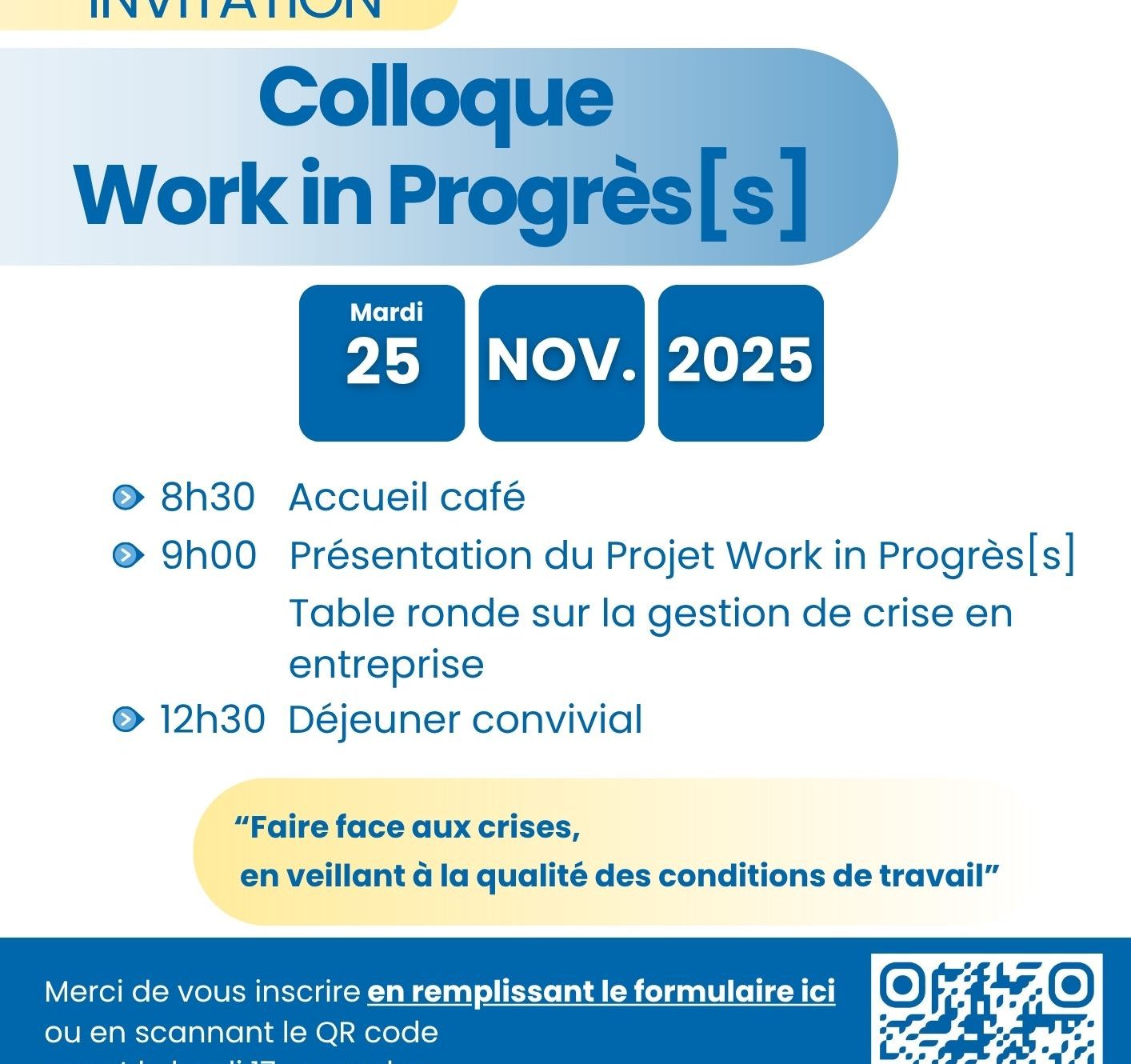 Dernière grande étape du projet avant l’édition d’un livre blanc, le colloque scientifique Work in Progrès[s] se tiendra le mardi 25 novembre 2025 matin.